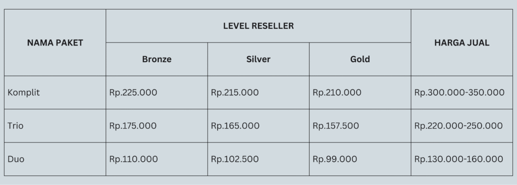 🥉 Bronze reseller membeli minimal 3-9 paket komplit